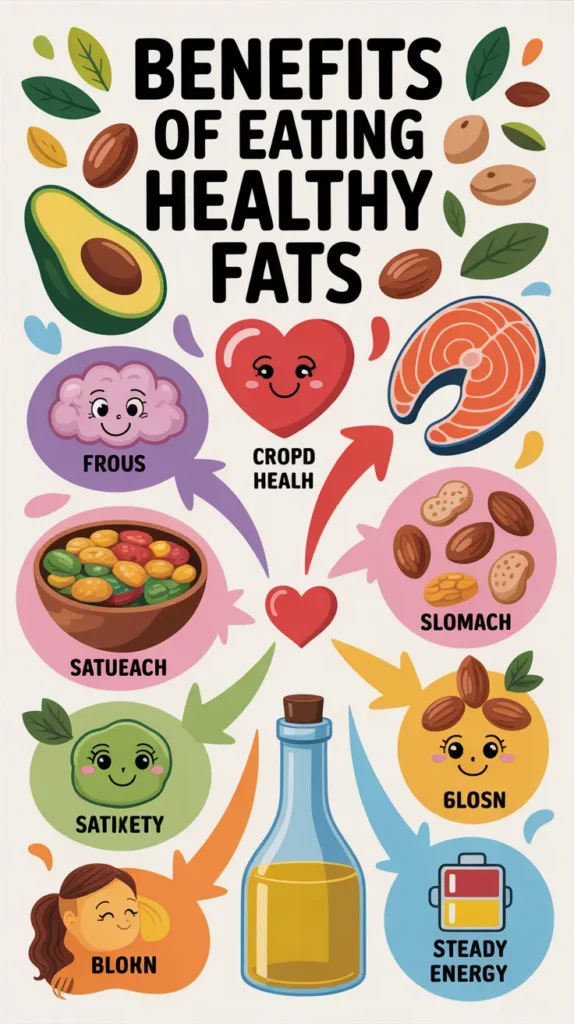 Healthy fats are an essential part of a balanced diet that support your body in many ways. They help your brain work better, keep your energy steady, and protect your heart, skin, and hair. Including the right fats in your meals is key to staying healthy and strong every day.