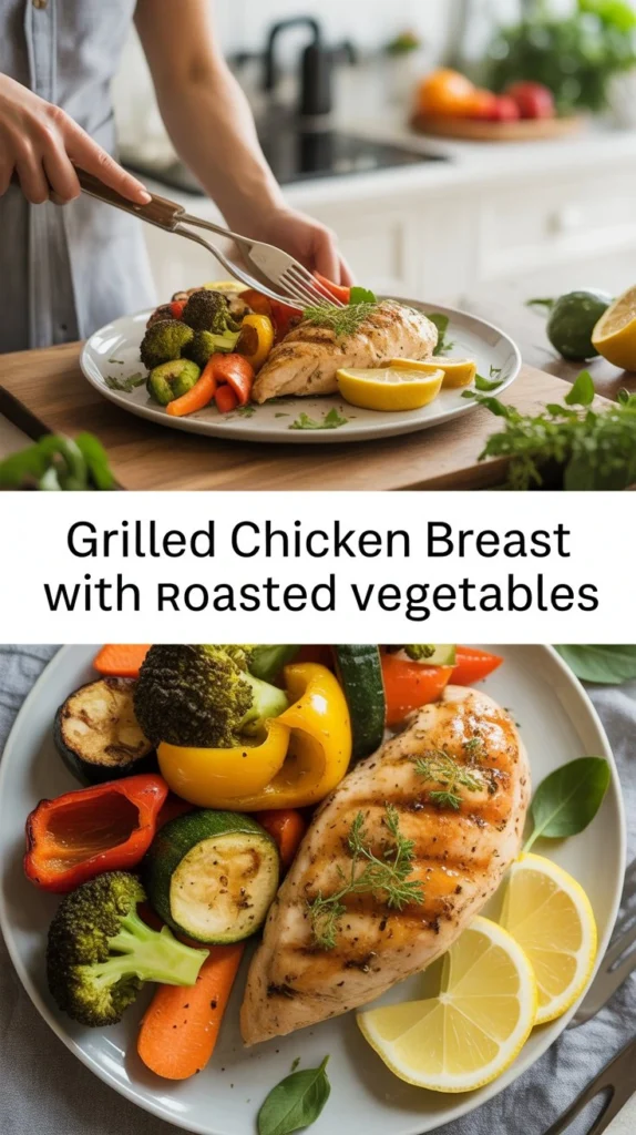 Grilled chicken with roasted vegetables is one of the easiest meals you can make for dinner. The chicken turns out juicy and tasty while the vegetables get soft and sweet in the oven. You cook everything at the same time, so you only use one pan for the vegetables and your grill or stovetop for the chicken. This meal takes about 30 minutes total and gives you plenty of protein and nutrients your body needs to stay healthy.