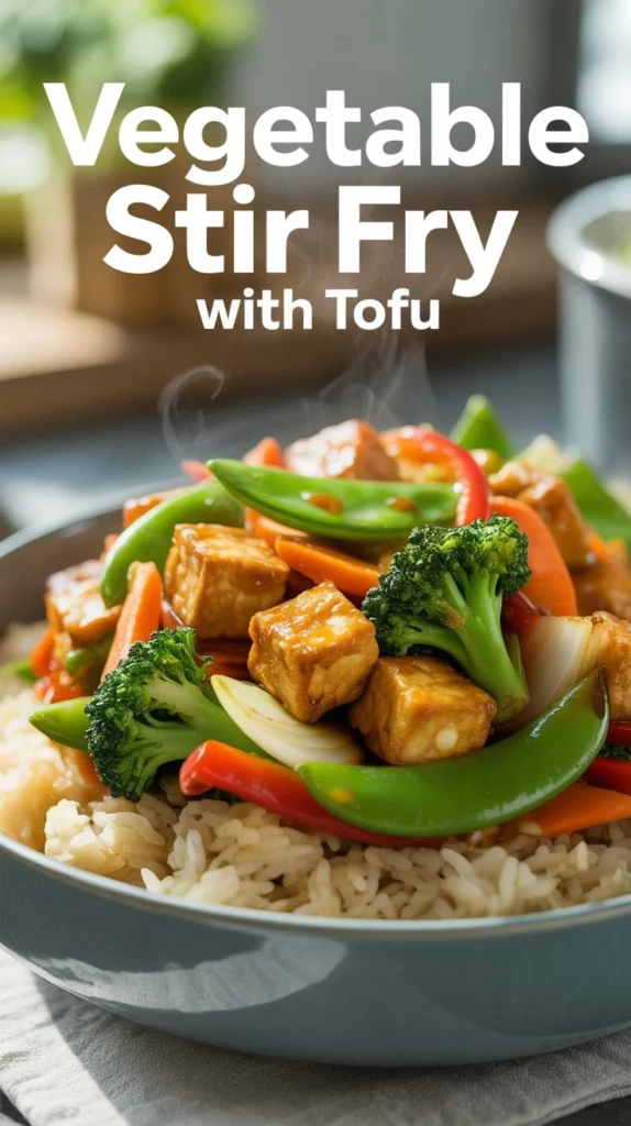 Vegetable stir fry with tofu is a quick and healthy dinner that comes together in about 20 minutes. Tofu soaks up all the flavors of the sauce and becomes crispy on the outside when you cook it right. Stir fry meals let you use whatever vegetables you have in your kitchen, so you can make this dish different every time. This meal gives you plant-based protein from the tofu and tons of vitamins and minerals from all the colorful vegetables.