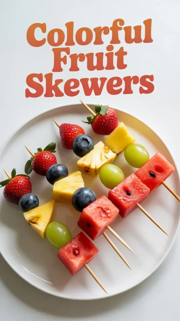 Colorful fruit skewers are a fun, vibrant snack that makes eating fresh fruit exciting and visually appealing. These rainbow-patterned treats are perfect for parties, picnics, or healthy desserts, offering a delightful mix of textures and flavors from juicy watermelon, tangy pineapple, sweet strawberries, and crisp grapes. Quick to assemble and packed with vitamins and natural fiber, these portable skewers are ideal for kids and adults alike.