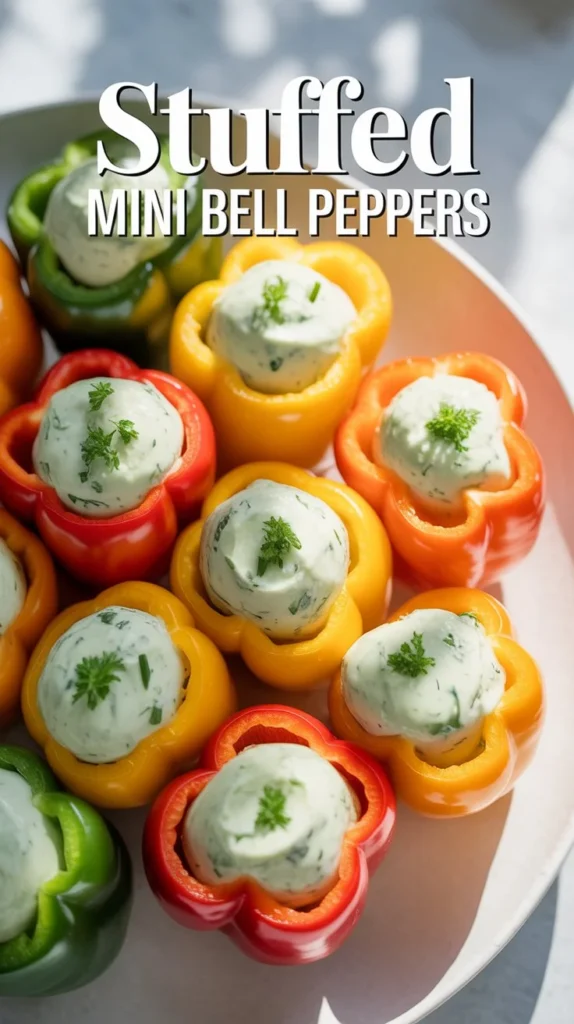 Stuffed mini bell peppers are a colorful, bite-sized appetizer that’s both visually appealing and bursting with flavor. These vibrant pepper halves filled with creamy, herb-infused cheese make a perfect finger food for parties, potlucks, or casual gatherings. With their naturally sweet and crunchy texture, mini bell peppers provide the ideal vessel for a rich, savory filling that’s enhanced with fresh herbs and aromatic garlic. Whether you’re entertaining guests or preparing a healthy snack for the week, these stuffed peppers offer a delicious combination of fresh vegetables and creamy cheese that everyone will enjoy.