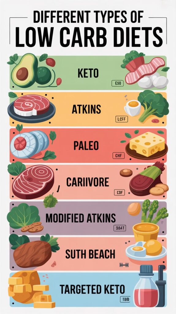 The paleo diet focuses on foods available to ancient humans, eliminating processed items, grains, legumes, and dairy products. While not specifically low carb, paleo naturally limits carbs to 50 to 100 grams daily by removing bread, pasta, rice, and sugar. You eat meat, fish, eggs, vegetables, fruits, nuts, seeds, and healthy oils. This approach works best for people interested in eating unprocessed foods and who prefer not tracking macros obsessively.