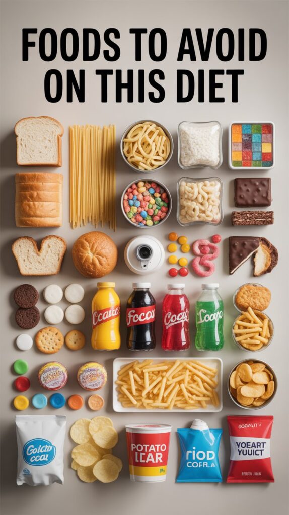 Table sugar, brown sugar, honey, maple syrup, and agave nectar all spike your blood sugar and provide empty calories. Candy, chocolate bars, gummy snacks, and other sweets contain massive amounts of sugar that sabotage your progress. Sweetened beverages like soda, fruit juice, sports drinks, and sweet tea pack 30 to 50 grams of carbs per serving. Even natural sweeteners like coconut sugar and date syrup contain too many carbs for this eating plan.